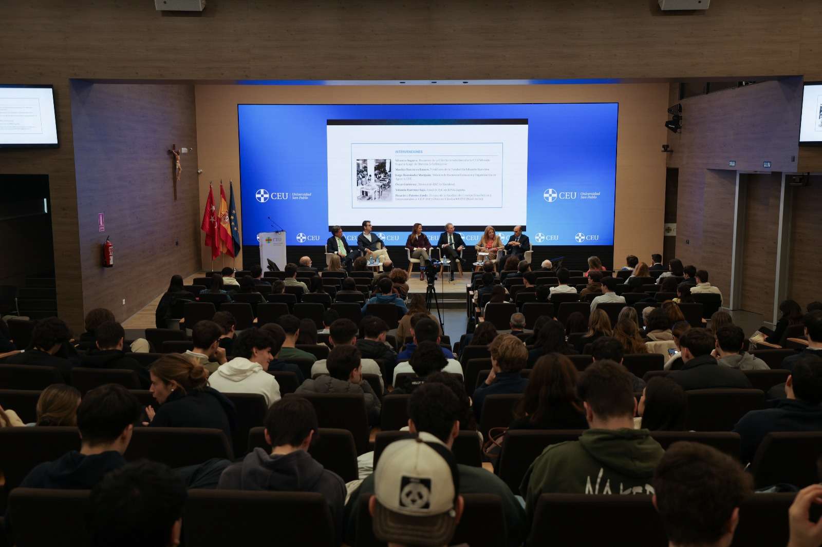 Madrid, 26 de marzo – El Aula Magna de la Facultad de Ciencias Económicas y Empresariales de la Universidad San Pablo-CEU acogió la jornada titulada «La implicación de la empresa. Entre los beneficios sociales y la fidelización del talento», organizada por la Cátedra interuniversitaria CEU Silvestre Segarra Aragó de Historia de la Empresa.